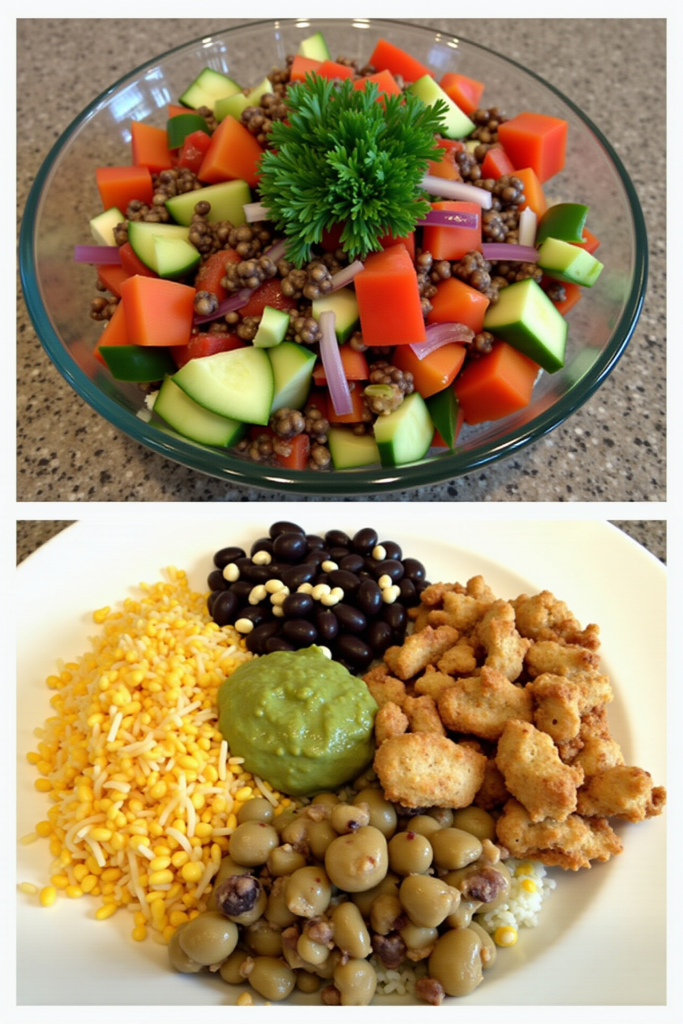 - Quinoa Chickpea Salad: Toss cooked quinoa, chickpeas, spinach, bell peppers, lemon juice, and olive oil for a fresh, fiber-packed lunch.